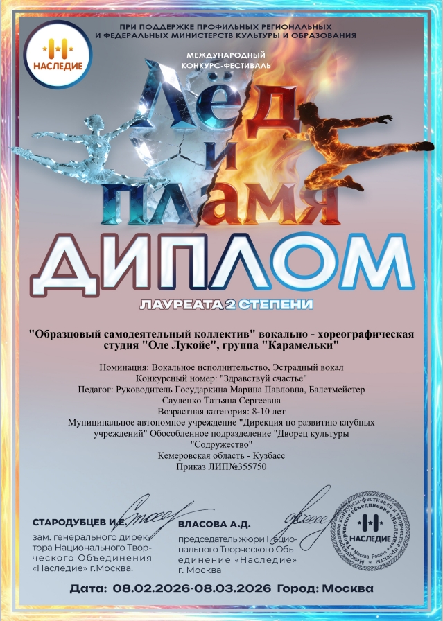 Дорогие друзья, наши творческие коллективы вновь радуют нас своими новыми достижениями! С 23 февраля по 16 марта в городе Москва проходил Международный онлайн...