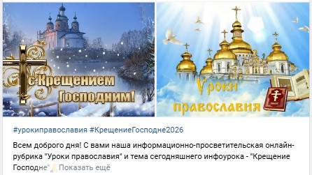 Всем доброго дня! В соцсетях ДК с вами наша информационно-просветительская онлайн-рубрика Уроки православия и тема сегодняшнего инфоурока - Крещение Господне Крещение...