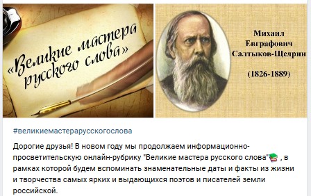 Дорогие друзья! В новом году мы продолжаем информационно-просветительскую онлайн-рубрику Великие мастера русского слова , в рамках которой будем вспоминать...