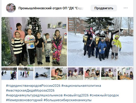 12 января творческая команда Дворца культуры «Содружество» провела игровые программы в Снежных городсках района. В жилом районе Промышлённовский площадь ДК...